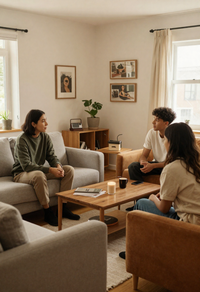Layering textiles is one of the most effective ways to create a cozy living room. Soft fabrics like wool, cotton, linen, and knits add warmth and comfort while making the space feel inviting. Start with a comfortable sofa and build layers using throw blankets, decorative pillows, and upholstered furniture. Mixing textures—such as chunky knits with smooth cotton—adds visual depth without overwhelming the room. Neutral or warm-toned textiles enhance the cozy feeling while keeping the design balanced. Layered textiles also make the living room feel lived-in and welcoming, encouraging relaxation and comfort throughout the day.